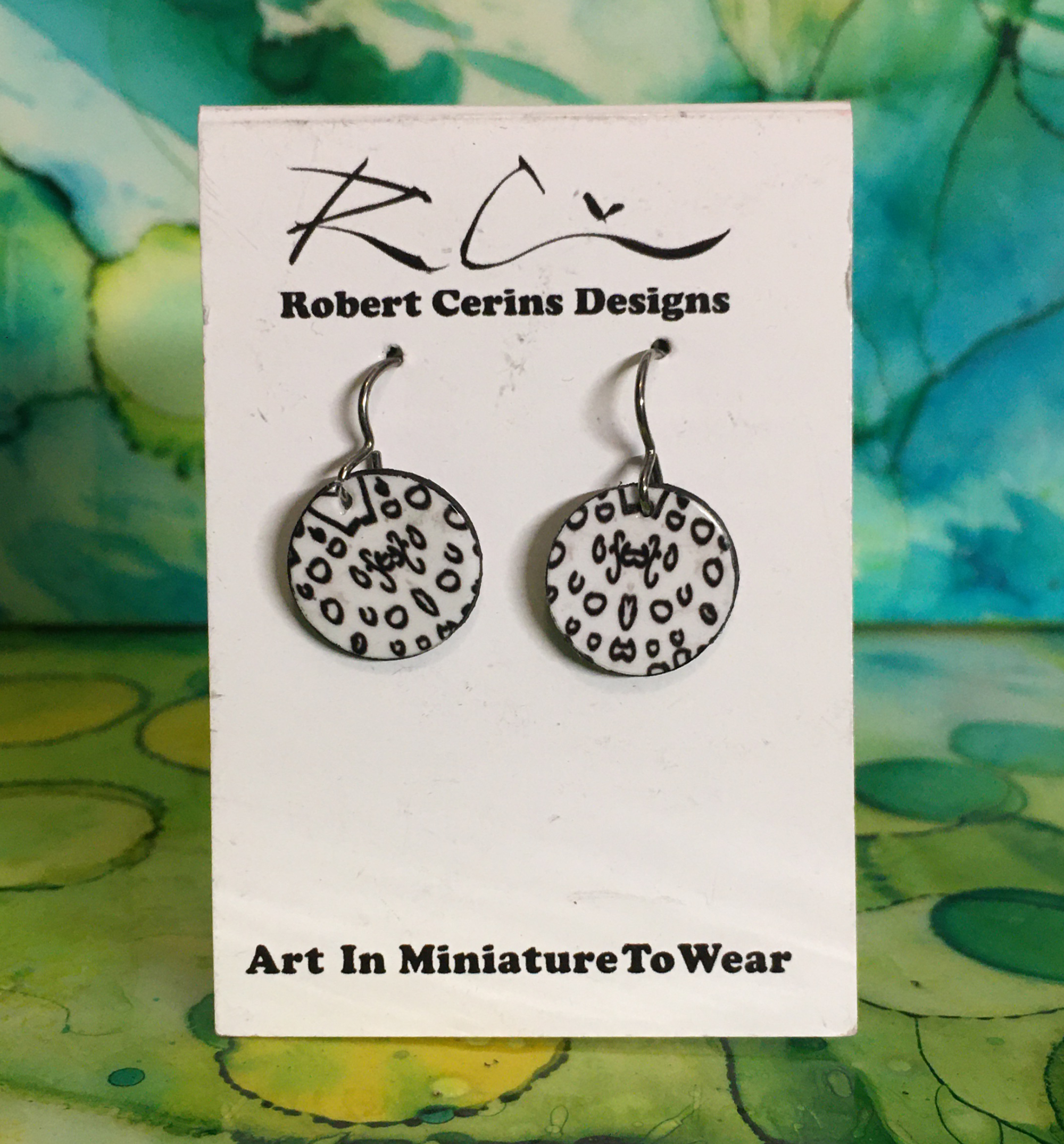 The earrings are then coated with a clear laminate for beauty and durability. The earrings dangle from 100% hypoallergenic niobium ear wires to provide comfort and elegance.